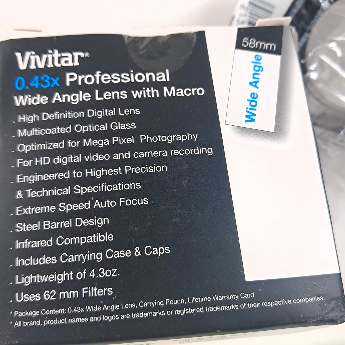 Vivitar 58mm Wide Angle Lens .43x (Two Of These, but one is missing the cap)