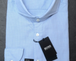 NWT Hugo Boss Mens Jemerson Slim Fit Softline Med Blue Spoted Cotton Dress Shirt