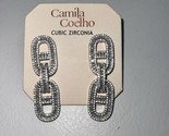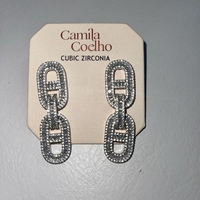 - CAMILA COELHO SILVER TONE CUBIC ZIRCONIA DOUBLE CHAIN LINK DROP EARRINGS 2”