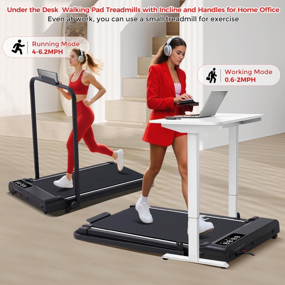 ?Incline Treadmill with Strong Motor? This treadmill with handles features a 3.0HP motor, 0.6?6.2MPH speeds, treadmill 320 lb capacity, and incline for calorie burn. Works as walking pad treadmill with handle bar, compact treadmill, or treadmill for home. Perfect small treadmills for small spaces or treadmills for home.