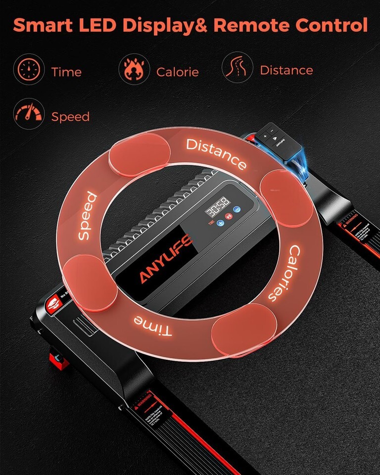 6 SHOCK ABSORBERS: This incline walking pad has a 4 layers non-slip running belt, ensure every step of your workout is firm and comfortable. 6 shock absorbers at the bottom of the treadmill reduce the impact of running and reduce the pressure on knees and joints for a healthy workout