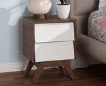 - Camino White and Walnut Wood 2-Drawer Storage Nightstand