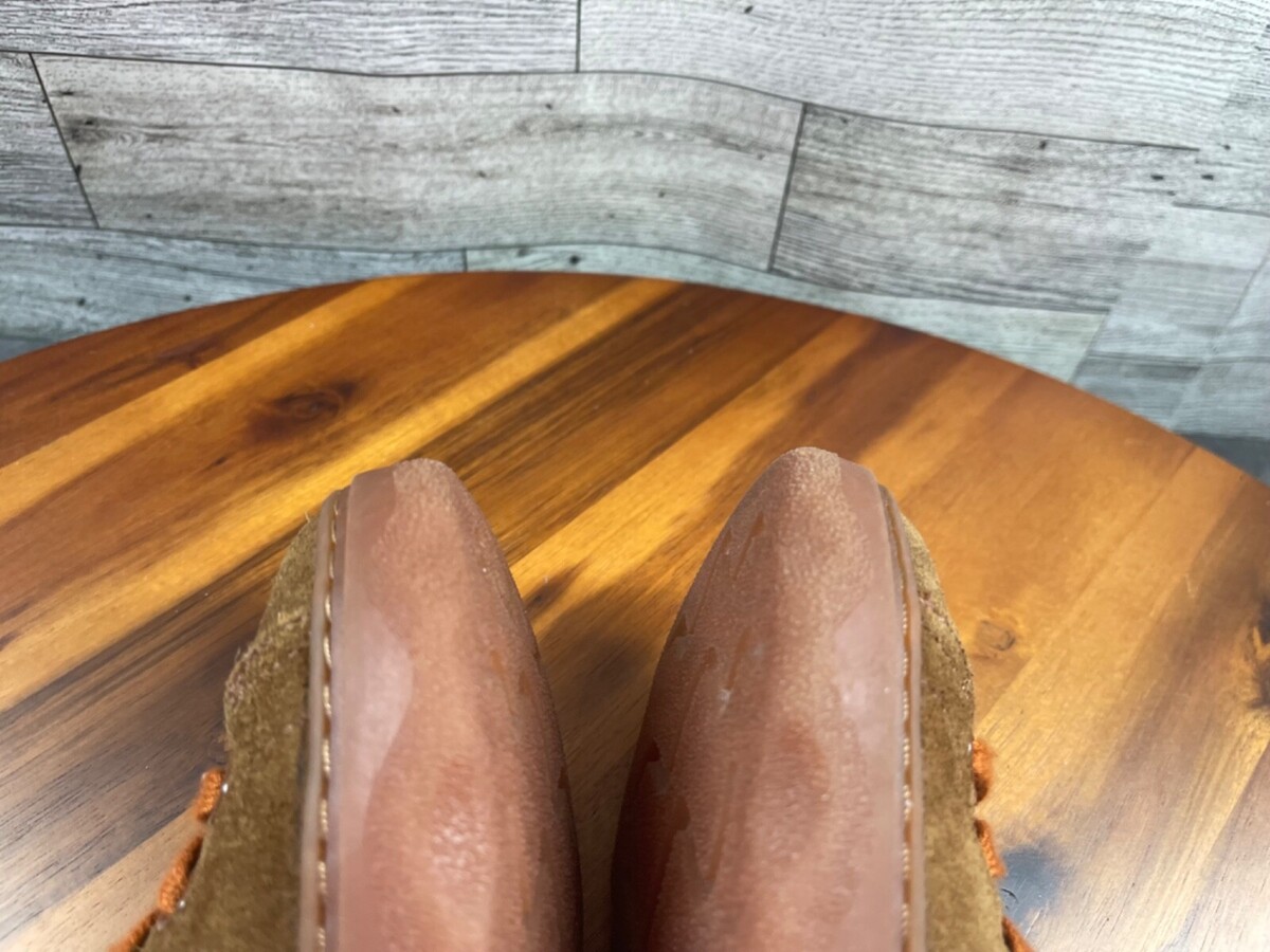 Note : Being a used item, there are signs of prior use on it like a few body abrasions, a little fading, staining, heel wear, some insole/inside body staining/wear and an area of gum on the bottom sole but overall, they are still in really great condition.