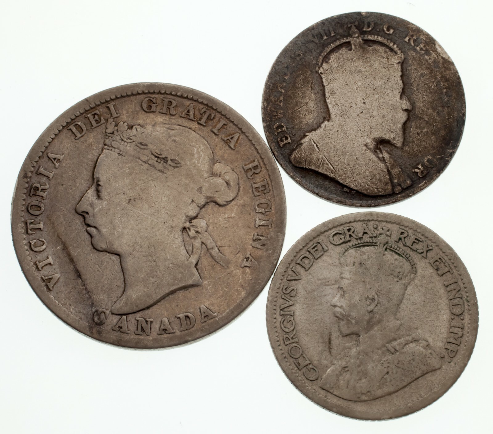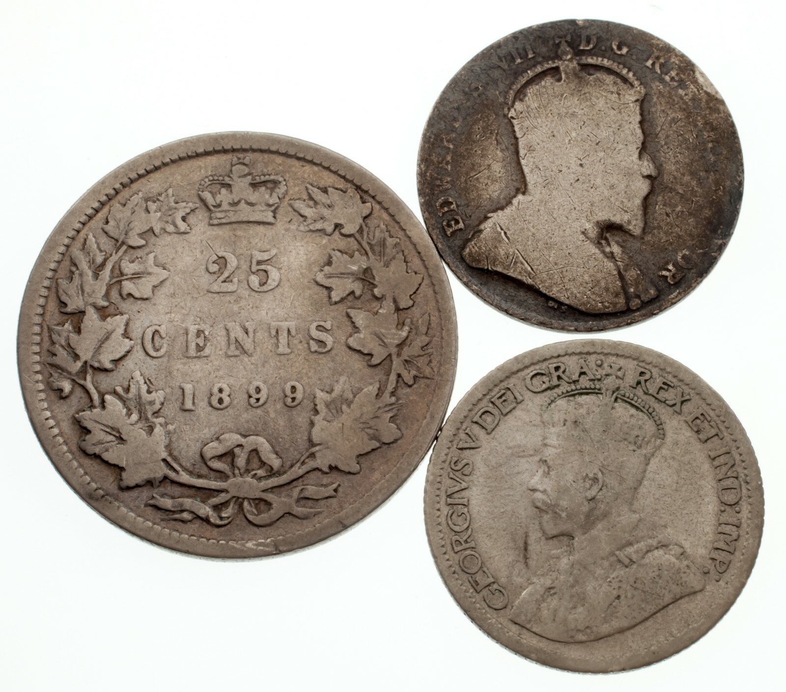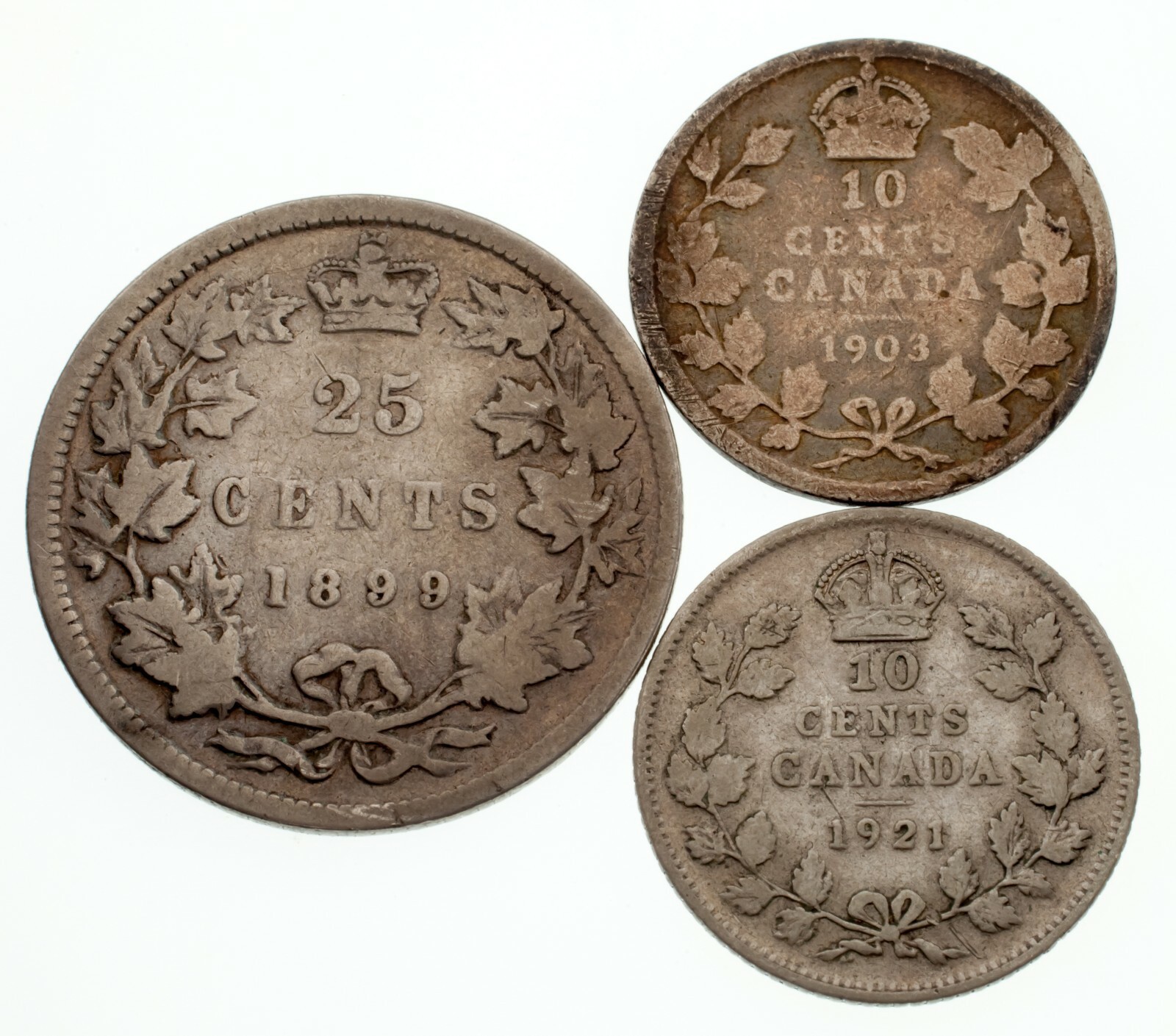 - Canada Full of 3 Silver Coins (1903 10C VG, 1921 10C VF, 1899 25C Fin)- show ...