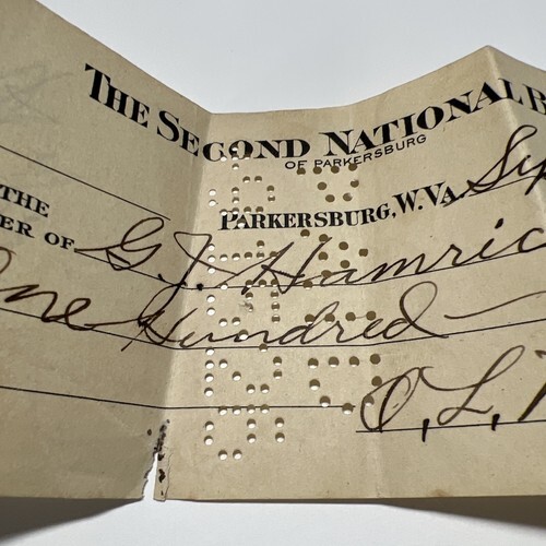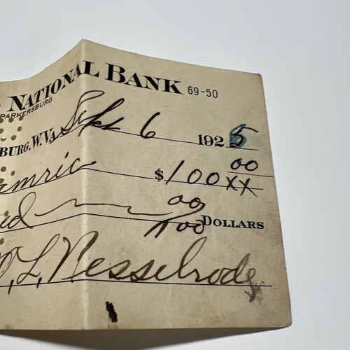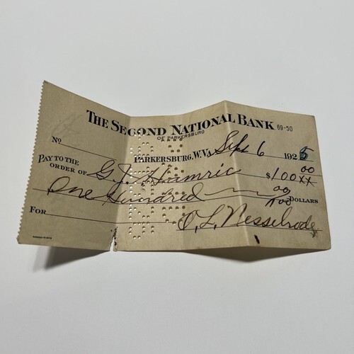 - Canceled Check Thé Second National Bank Of Parkersburg West Virginia 1925
