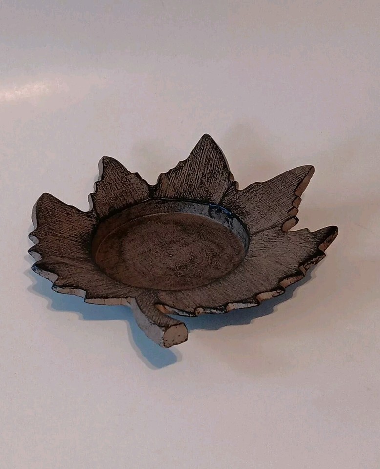 - Candle Holder Metal Leaf Shape Brown Autumn Harvest 8" For Piller T-Light Candle