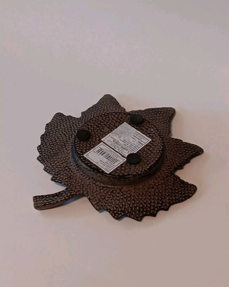Add a touch of autumnal charm to your home decor with this metal leaf pillar candle holder. The brownish, matte finish of the leaf-patterned candle holder is perfect for fall. It's suitable for holding pillar candles and measures approximately 8 inches in length. This Kohl's brand candle holder is an excellent addition to your fall decoration collection. The leaf-shaped candle holder is made of metal and features a unique Fall-themed design that will complement any home decor. Normal wear. See pictures.