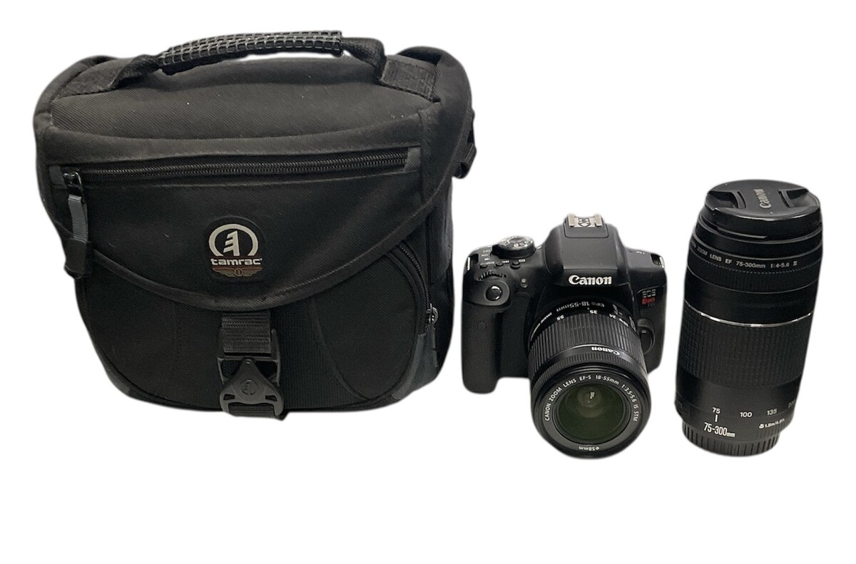 Type: Digital SLR KitBrand: CanonModel number: DS126571Model name: EOS Rebel T6iColor: BlackSize: 24.2MPBuilt-in flash: yesCase included: yesCharger included: yesCondition:UsedNotes:In case with two lenses 18-55mm and 75-300mm