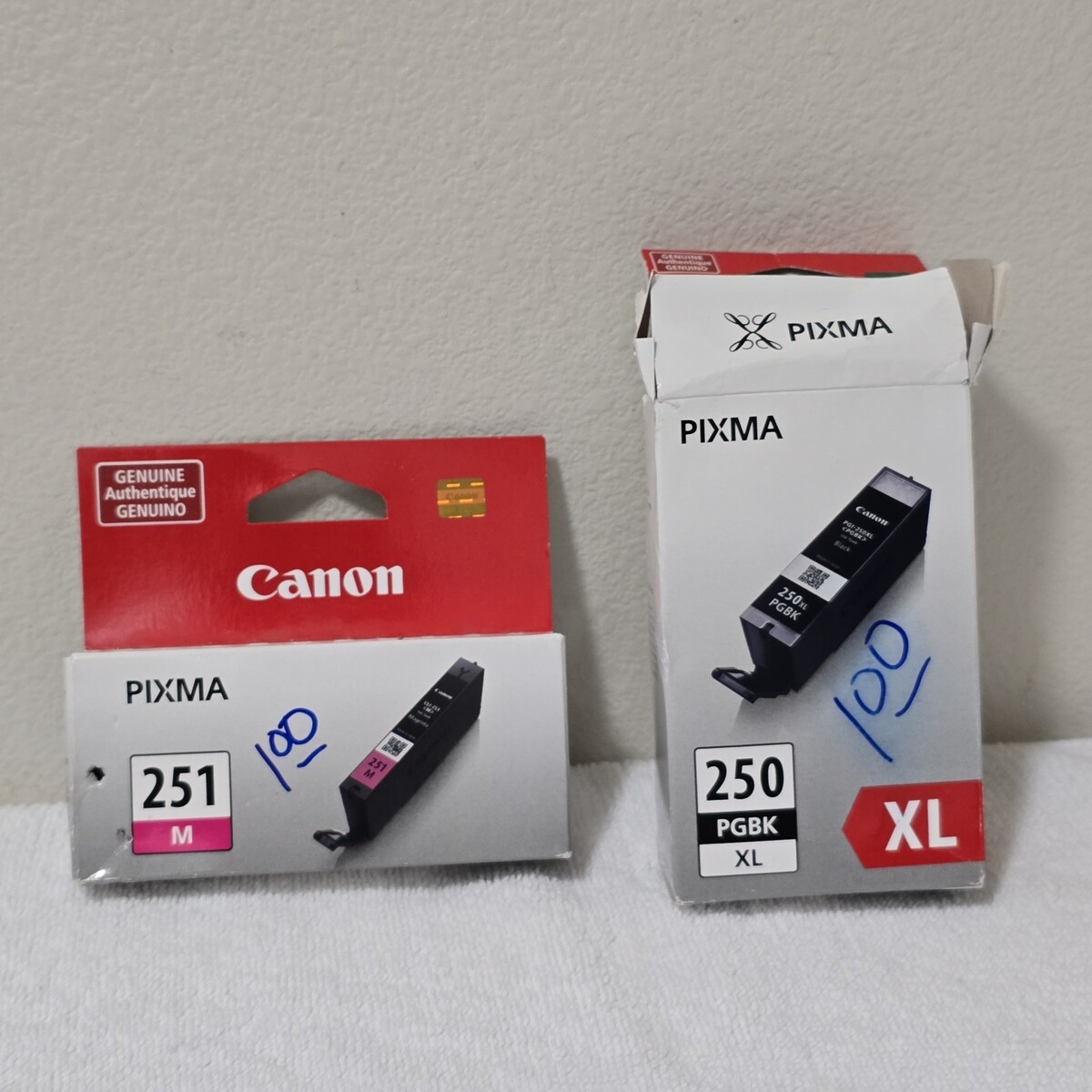 - Canon PGI-250XL Black + CLI-251 Magenta Ink Cartridge Lot Genuine PIXMA OEM