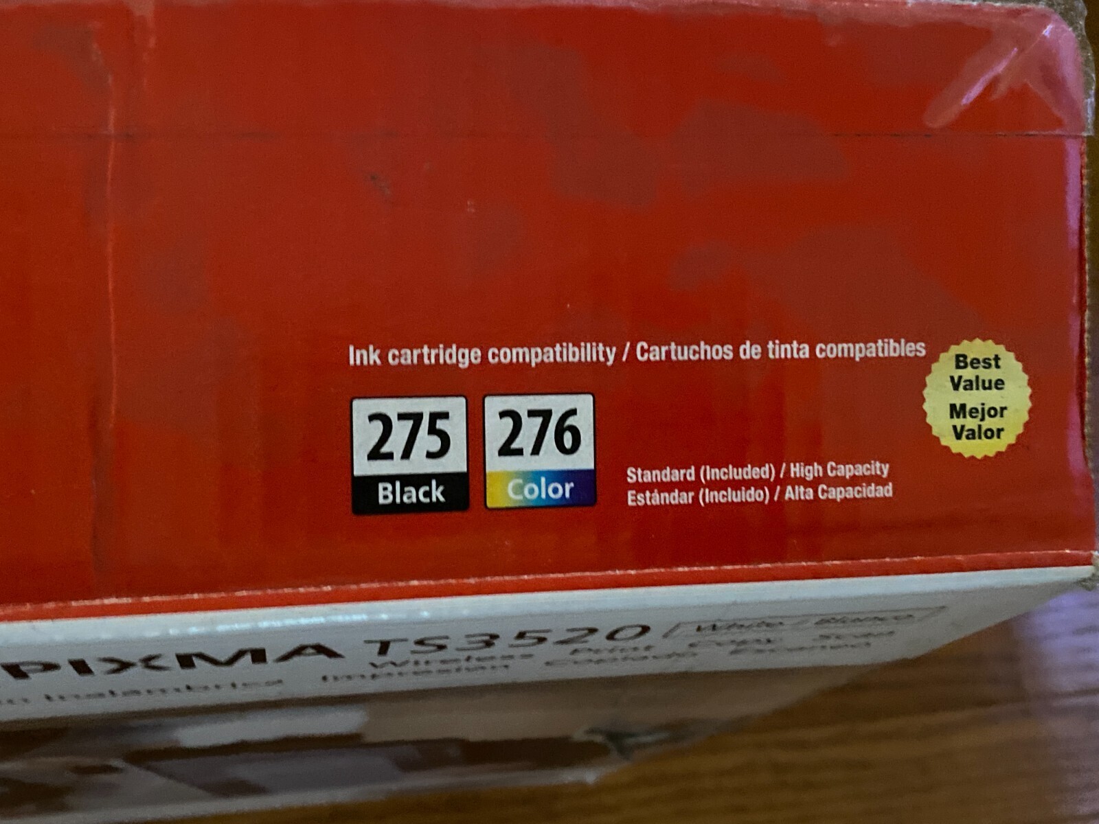 Canon PIXMA TS3520 White Wireless All-In-One Inkjet Printer Copier Scanner USB - Ink Cartridge Compatibility 275 Black 276 Color