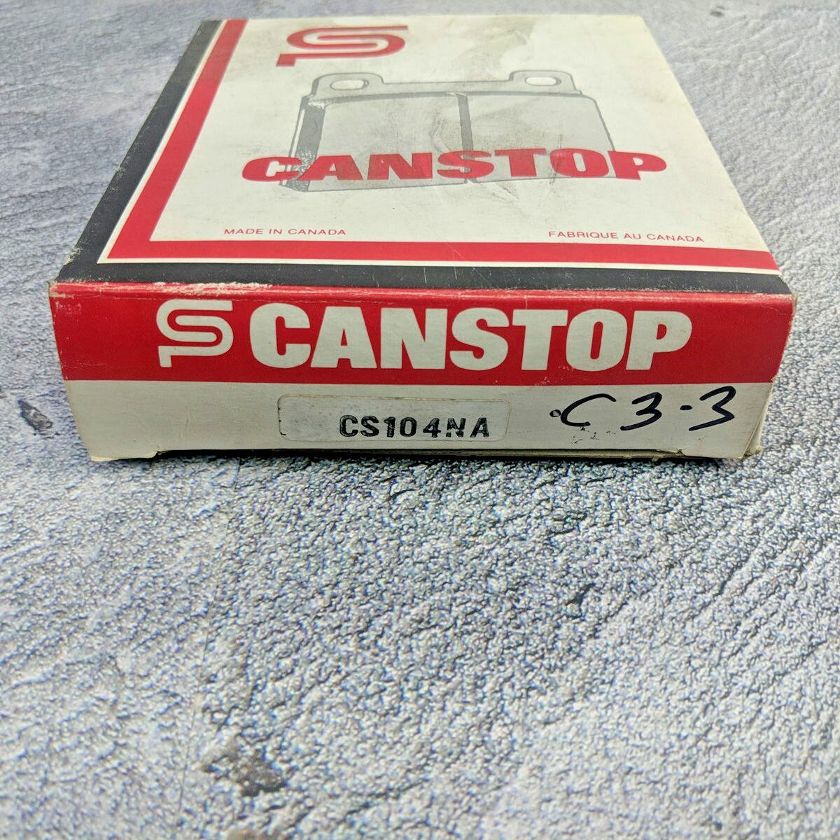 The Canstop CS104NA brake pads are designed for the 1984-1990 Nissan Sentra, offering a quiet operation for the front brake system. Made from semi-metallic material, these vintage brake pads come in a pack of 4 and are interchangeably compatible with part numbers MX275, CS104, MF275, and MKD275. Manufactured in Canada, these pads feature OE/OEM part number 4106076A85 and provide reliable performance without being classified as a performance part. The product also includes California Prop 65 Warning for Cancer and Reproductive Harm.