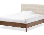 - Canterbury Light Beige Fabric Upholstered Walnut Wood Queen Size Platform Bed