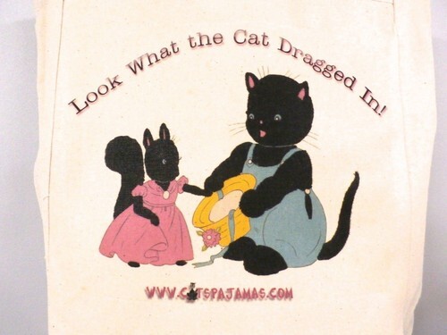 "THE CATS PAJAMAS" TOTE BAG "LOOK WHAT THE CAT DRAGGED IN"