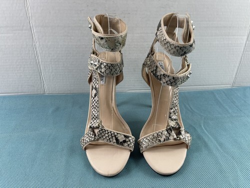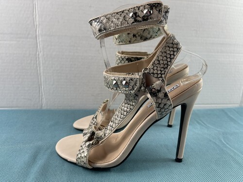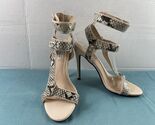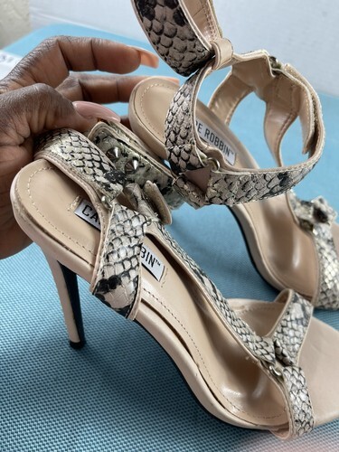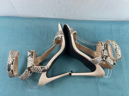 - Cape Robbin Sandals Women 7.5M Shoes Black Tan Leather Snake Print Ankle Strap
