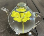 - Capredoni Vintage Tea Pot Hand Blow Glass Air Bubbles Paperweight Yellow Flower