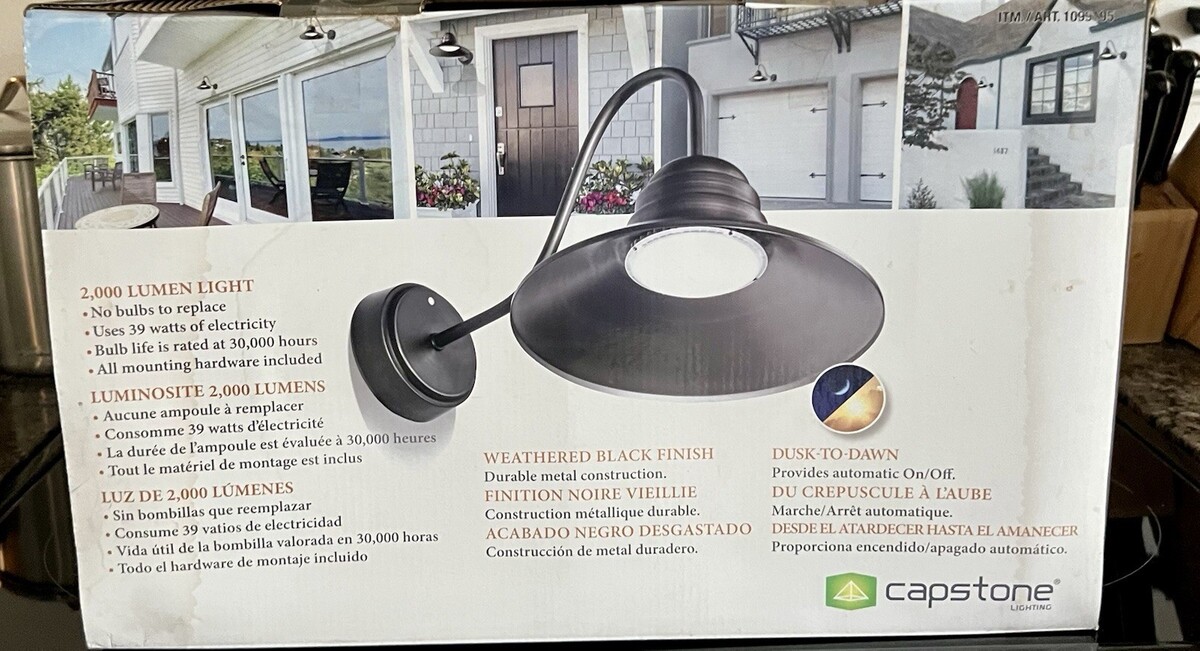 - Capstone Dusk to Dawn LED Gooseneck Lantern 2000 Lumen Light Black NEW