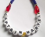 Calling all super fans. Is this not a awesome piece of jewelry. Inspired By Captain Marvel herself, this bracelet features red, yellow, and blue beads. Closes with a gold toned lobster clasp and O ring. It measures 7 1/2 inches so should fit most. Strung on silver beading wire, with the title Captain Marvel spelled out in black and white round letters.
