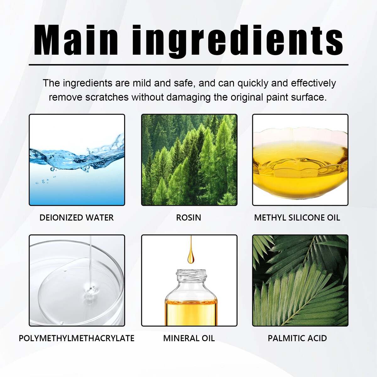 Our Car Scratch Repair Paste contains deionized water, resin, and methyl silicone oil. It can quickly and easily repair minor scratches and wear marks on the outside of the car. Its use is very simple: apply the product to the corresponding position, and then apply it back and forth with a sponge. Can be used on all types of paint while penetrating deep into the paint to fill in scratches and wear marks.