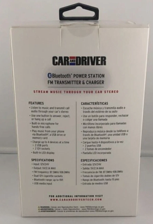 - Car and Driver Car Power Station 4 Charging Ports & FM Transmitter Bluetooth