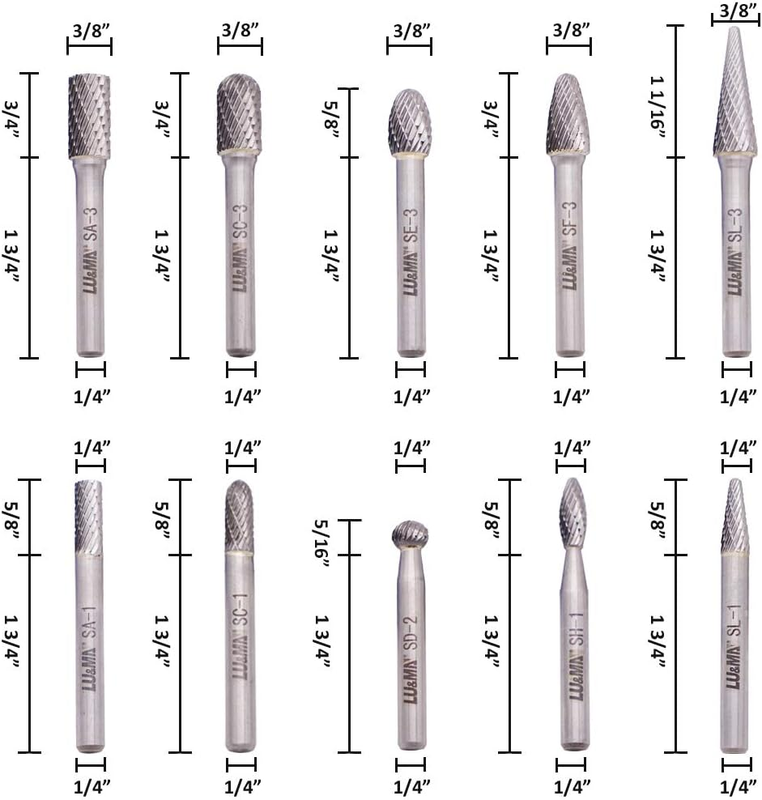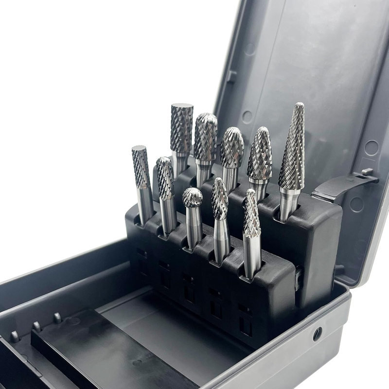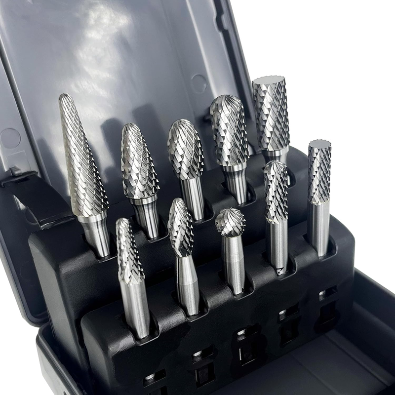 - Carbide Burrs Set 10Pcs, Double Cut Solid Carbide Rotary Burr Set 1/4" Shank Fo