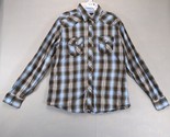 Carbon Blue Brown Plaid Cotton Button Up Shirt Men's L Long Slv Gorpcore Grunge