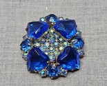 - Carbon Blue Floral Heart Shape Pin Pinback Brooch, 1.5'' Diameter Vintage