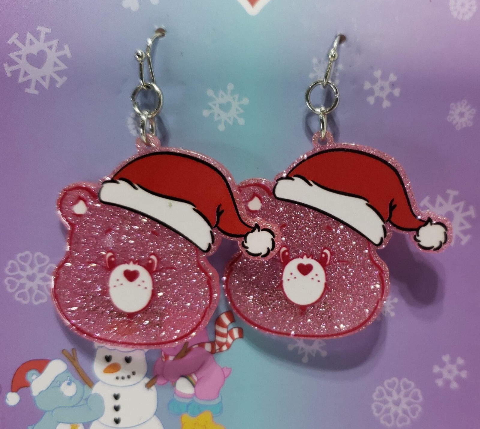 These Care Bears Women's Santa Hat Glitter Christmas Earrings.