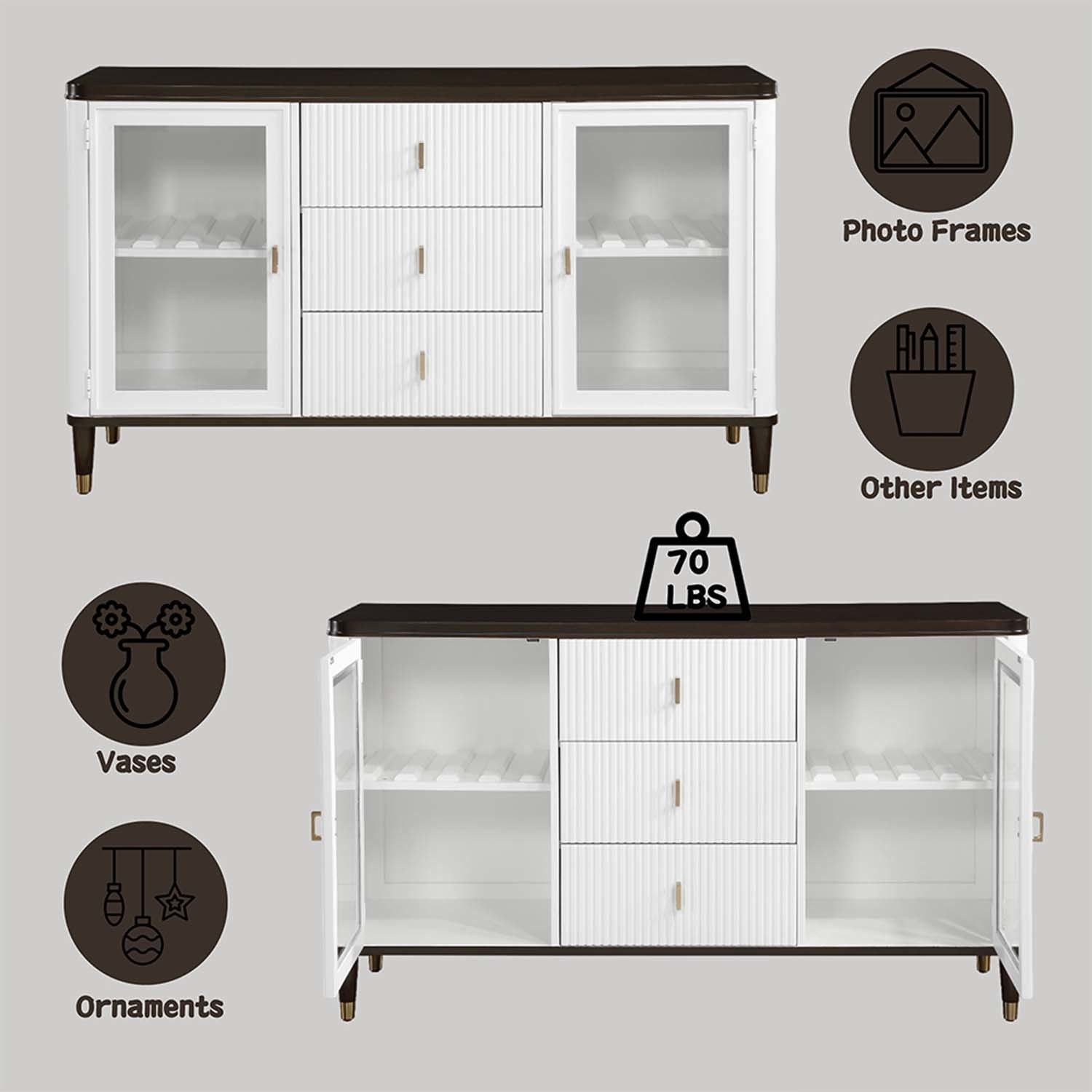 Features: 3 Drawers and 2 Door Storage Server Wine Rack Storage Slatted Front Design Built with sturdy, durable materials designed to last for years Designed for comfort and everyday functionality. Set Includes: One (1) Servers