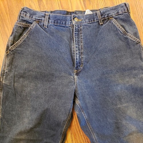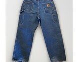 - Carhartt Distressed Jeans Mens 38x30 B13 Original Dungaree Baggy Blue Denim USA