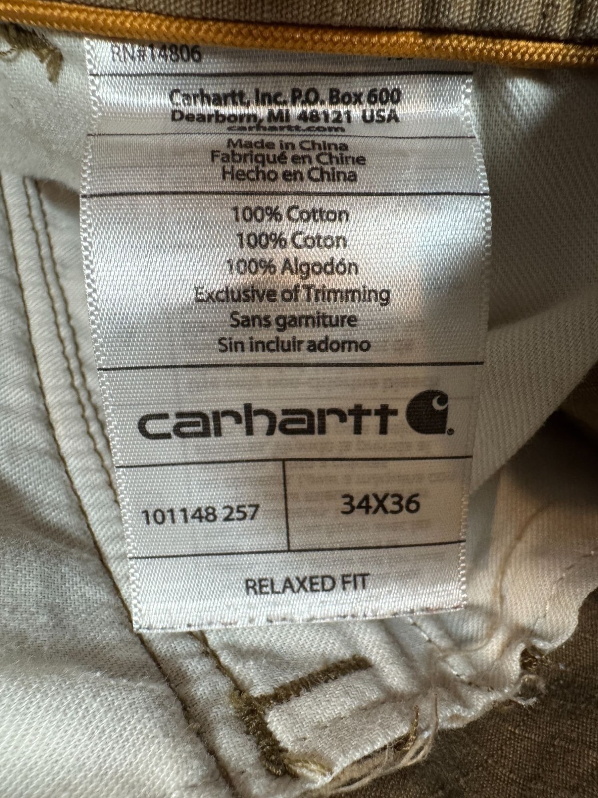 - Carhartt Force Tappen Cargo Work Pants Tan Khaki Workwear Relaxed Fit Mens 34x36