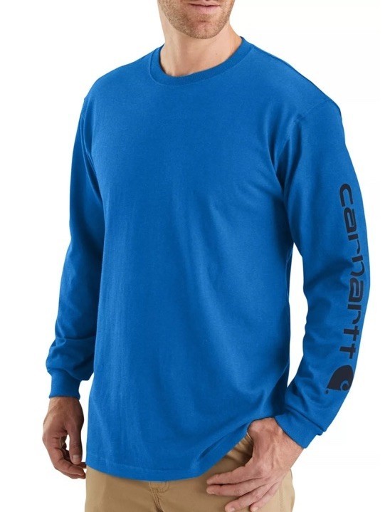 - Carhartt Men's Graphic Logo Long Sleeve Shirt Loose Fit Crew Neck Blue Size XL