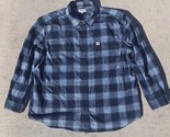 Carhartt Original Fit Button Front Work Blue Flannel Plaid Shirt Men 2XL