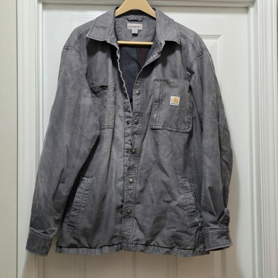 - Carhartt Rugged Flex Canvas Fleece Lined Work Shirt Jacket Gray Men's XL / 2X
