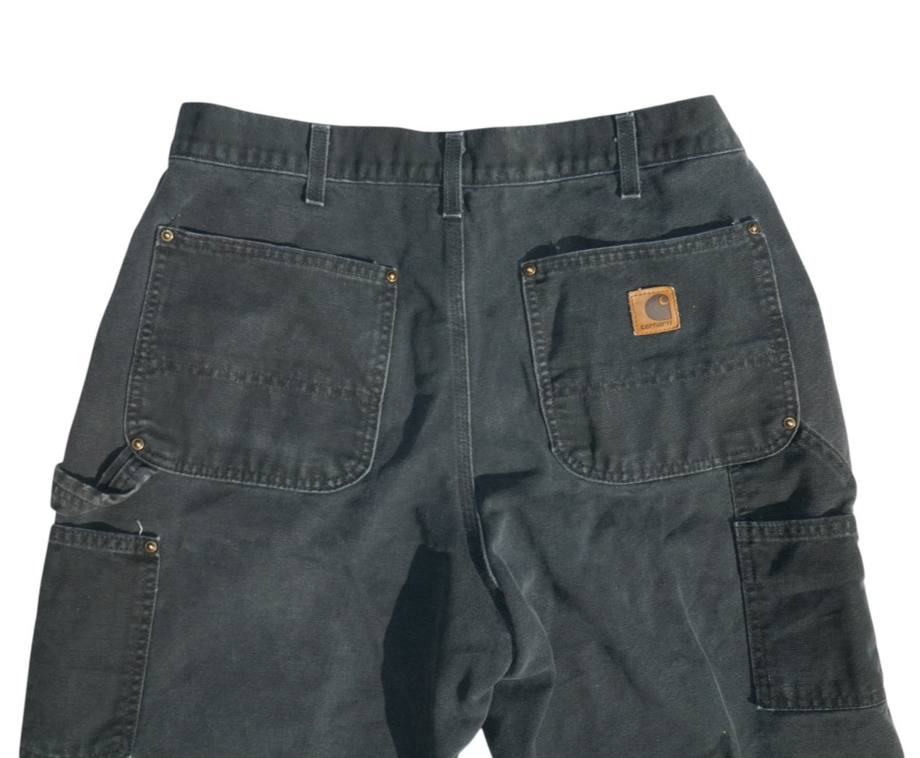 - Carhartt Washed Duck Double Front Dungaree B136 Black Pants Distressed 33x35