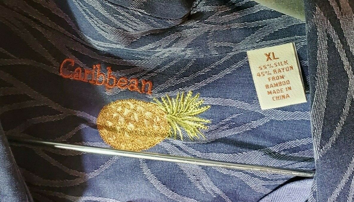 - Caribbean Pineapple Men's Blue Silk Blend Button Short Sleeve Hawaiian Shirt XL