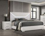 This design-savvy four-piece bedroom set features clean, modern lines and a subtly gorgeous, smoky, light-toned finish with eye-catching paneled and weathered effects. The set includes a bed, nightstand, dresser, mirror, and chest, creating a smart, chic, and casual look that balances relaxation with design-forward style.