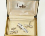 - Carlton Eyeglass Cufflinks and Matching Tie Clip Silver Tone Rhinestones + Case
