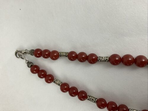 - Carnelian, Rondelle, Sterling Silver And Glass Ruby 28” Necklace With Cabachon