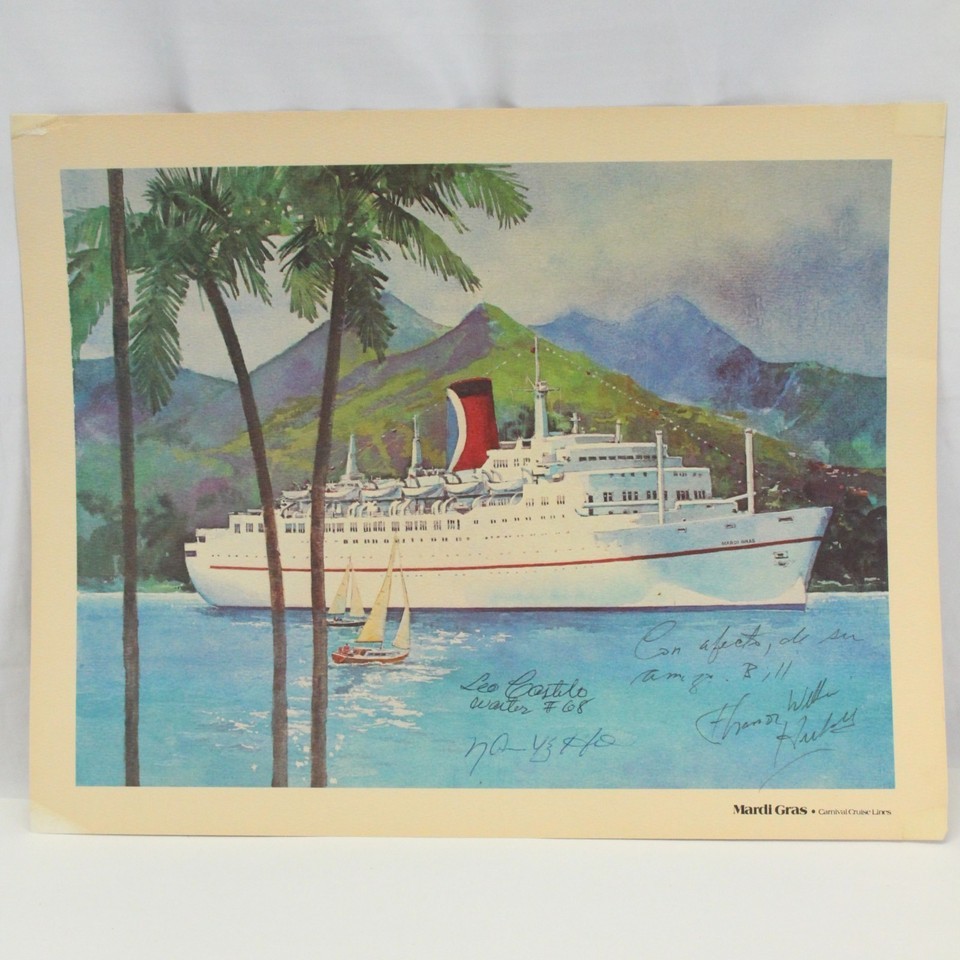 - Carnival Cruise Lines Mari Gras Souvenir Placemat 11" x 14" Signed By Staff