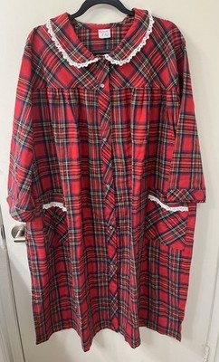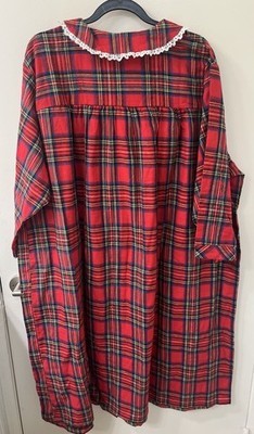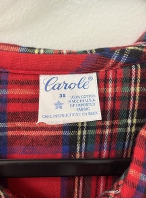 - Carole Flannel Nightgown Womens 3X Red White Plaid Ruffle Neck Cotton christmas