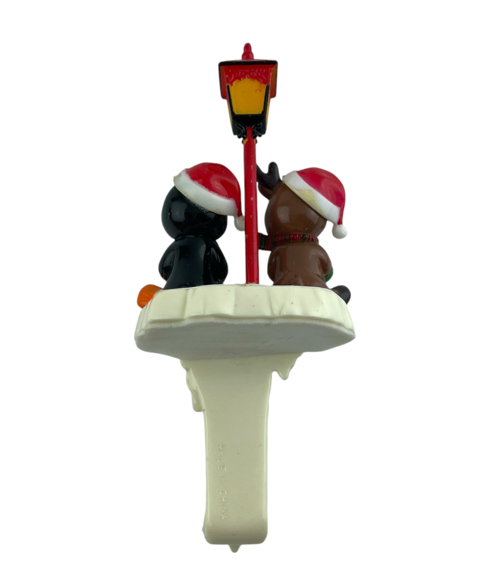 Caroler Pals Vintage Christmas Stocking Holder Reindeer and Penguin