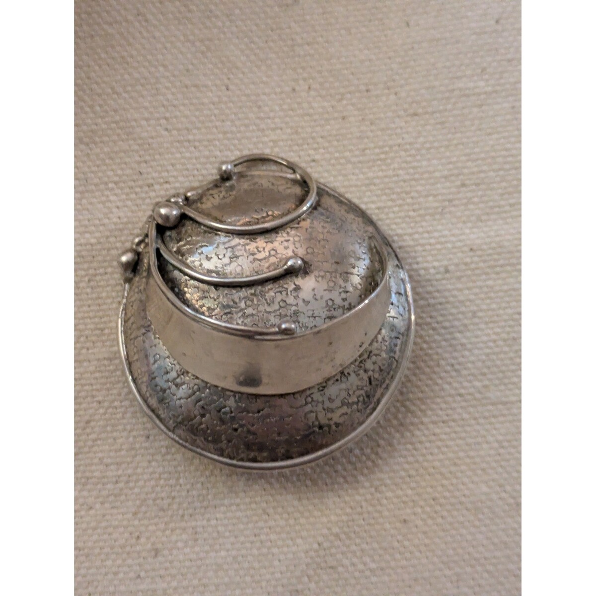 Keywords: Groves Sterling Silver Brooch, Vintage Brooch Pin, Art Nouveau Jewelry, Textured Silver Pin, Sculptural Brooch, Designer Brooch, Unique Silver Pin, Collectible Brooch, Estate Jewelry, Handcrafted Brooch, Silver Statement Piece, Elegant Brooch