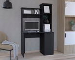 Abundant Storage: Features multiple open shelves and a single door cabinet with interior shelving, catering to diverse storage needs.