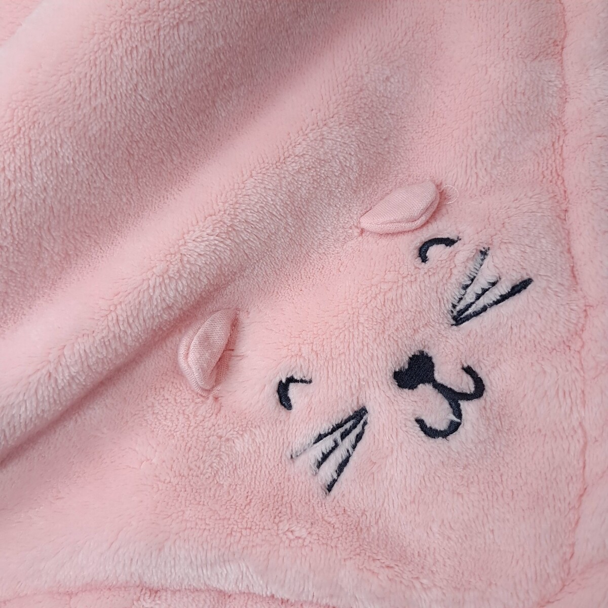 - Carter's Pink Kitty Cat Baby Blanket White Sherpa black Kitten Face Corner Plush