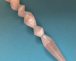 Providing a wonderful magical tool for directing energy within your ritual practice, this selenite spiral wand or athame is a unique piece of art, as beautiful as it is useful within your magical practice. Polished and sculpted piece of selenite, created with unique contours and spiral patterns that fit comfortably to your hand. And once you have it in your hand, you'll not want to put it down. Touched to your palm, you cannot help but to enjoy how easy it would be to channel the flow of energy through your new, selenite crystal wand or athame. Hand carved, about 7 inches in length. Selenite can inherently contain discoloration, fissures and seams - these are not flaws.