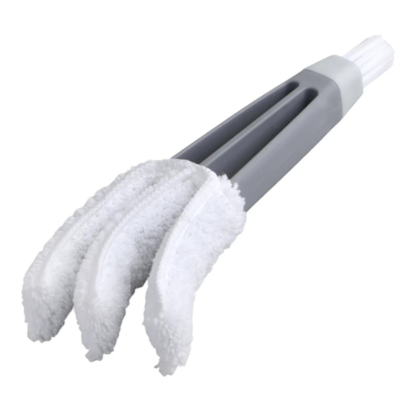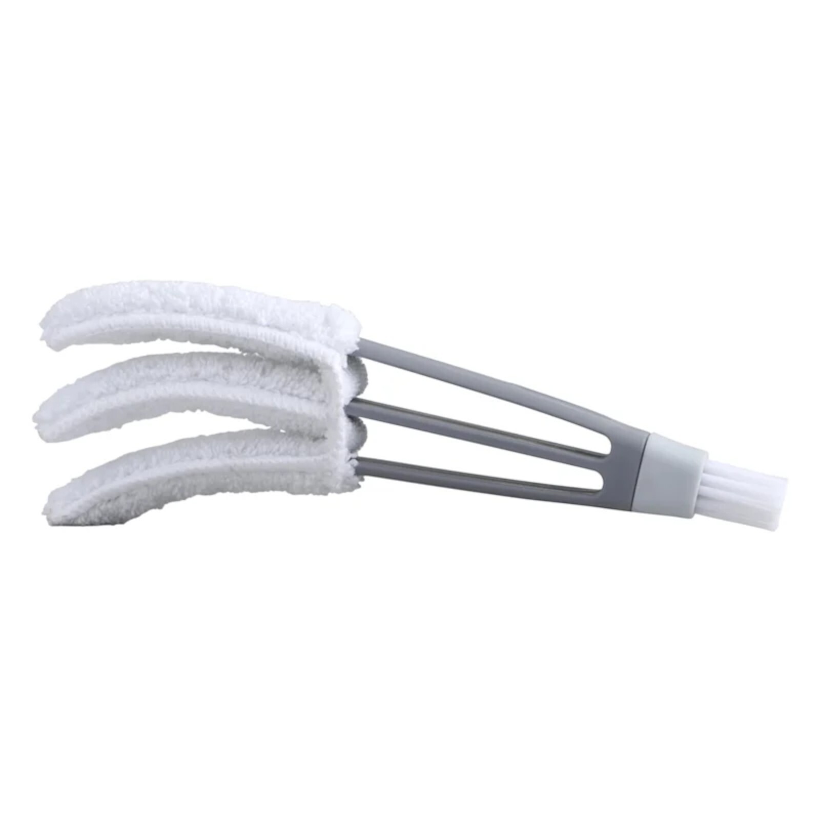 Features: Perfect solution for cleaning blinds. Triple blade hand duster. Built in detail brush to clean around tight window corners and crevices. Microfiber duster head attracts and holds dust, dirt, and pet hair.