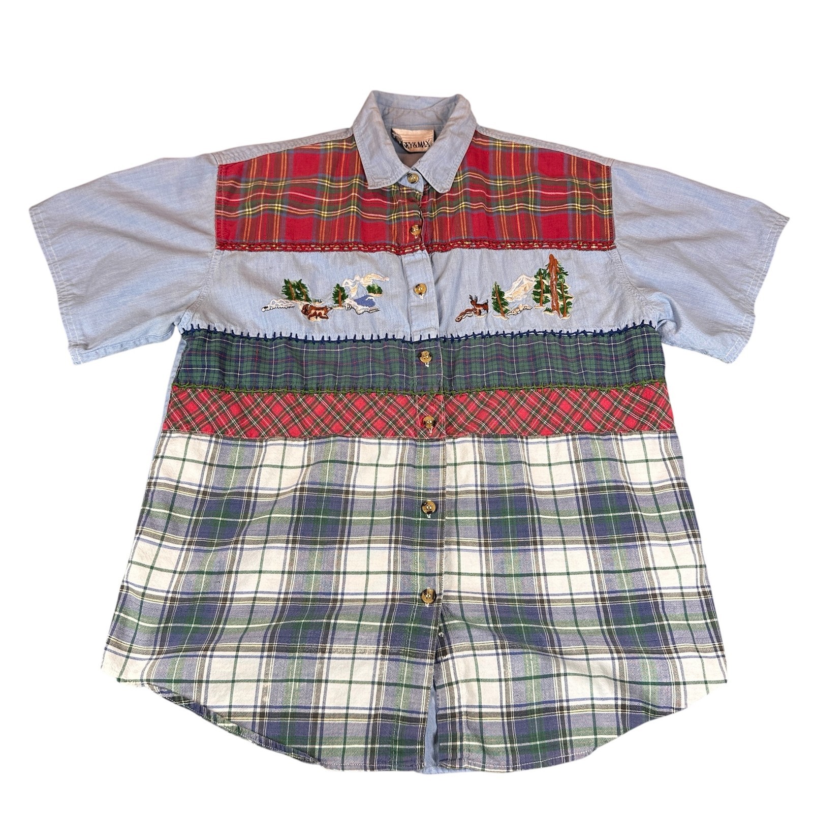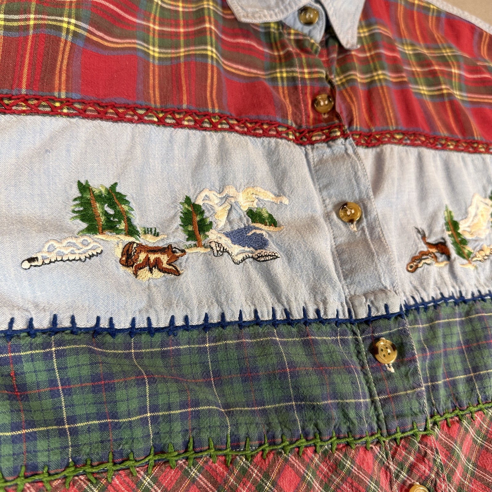 Casey and Max Patchwork Plaid Shirt Womens Large Embroidered Outdoors Cabin
