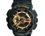 Type: Wrist watchBrand: CasioModel number: GA-110GBModel name: G-ShockCase width: 50mmWeight: 46.8Bracelet length: 9"Movement type: Quartz (Battery)Case Material: RubberBox included: noPaperwork included: noRunning: yesDial color: Black/GoldBand material: RubberCondition:UsedNotes:Black coating is coming off the watch and band.