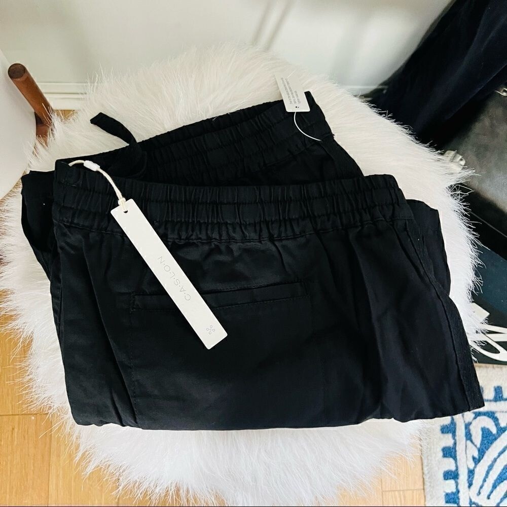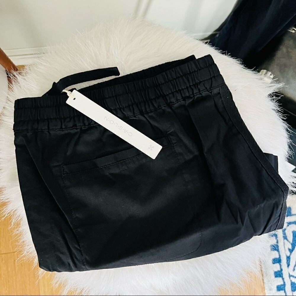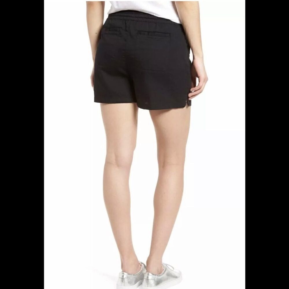 CASLON PULL ON TWILL SHORTS COLOR: BLACK SIZE: XXL (18) High rise. Casual yet polished, these lightweight cotton-blend shorts have sleek pockets and a comfortable elastic waist. Elastic/drawstring waist Side-seam pockets; back welt pockets Side slits 51% cotton, 49% viscose Machine wash, tumble dry Imported