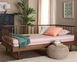 Features: Constructed from rubberwood, MDF wood, and LVL Walnut brown finish Spindle design Wood slats eliminate the need for a box spring Tapered legs Bottom of railing measures 8.3" from floor Set Includes: One (1) Twin Size Daybed